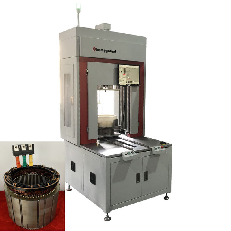 ElMáquina de prensado controlada por servoestá diseñado para el prensado de precisión de estatores en motores de alambre plano, lo que garantiza un rendimiento fiable del motor. Equipado con un mecanismo de servoprensa, permite el control en tiempo real de los parámetros de presión,con una pantalla de ordenador que muestre los valores de la curva de presión.